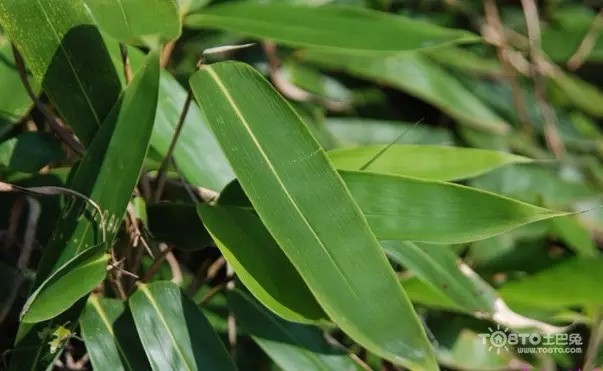 即箬竹。稈勻細(xì)而節(jié)長,中空極小,可以制筷。葉片寬大,可以裹粽和制船篷。